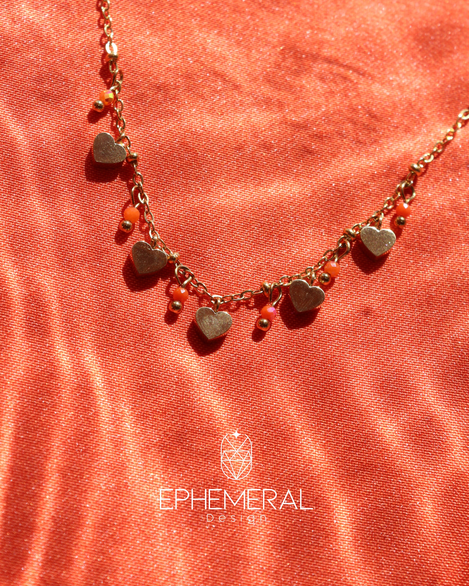Cadena de mostacillas y corazones